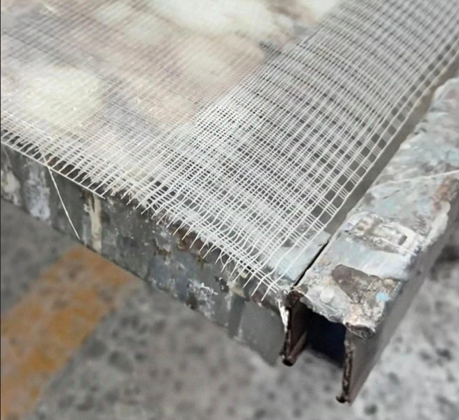 사용 에폭시 수지 접착제 고강도 섬유 보호망(망사 크기 5×5mm, 무게 약 900g/m², 폭 1.2~1.8m)을 석재 뒷면에 부착합니다. 경화 후 보드 강도가 향상됩니다. 대리석, 화강암, 트래버틴, 오닉스 등의 대형 또는 얇은 슬래브 보강에 적합합니다.
