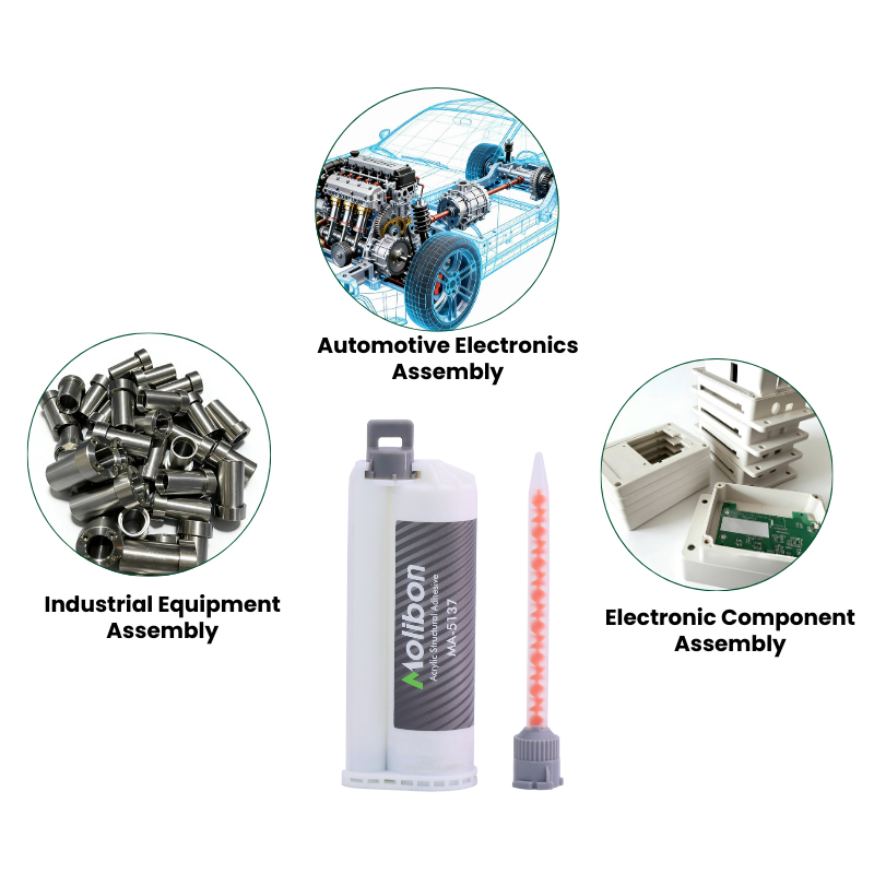높은 강도와 충격 저항성이 요구되는 산업 장비에서 금속 대 금속 및 금속 대 플라스틱 등 다양한 재료의 구조적 접합에 적합합니다.