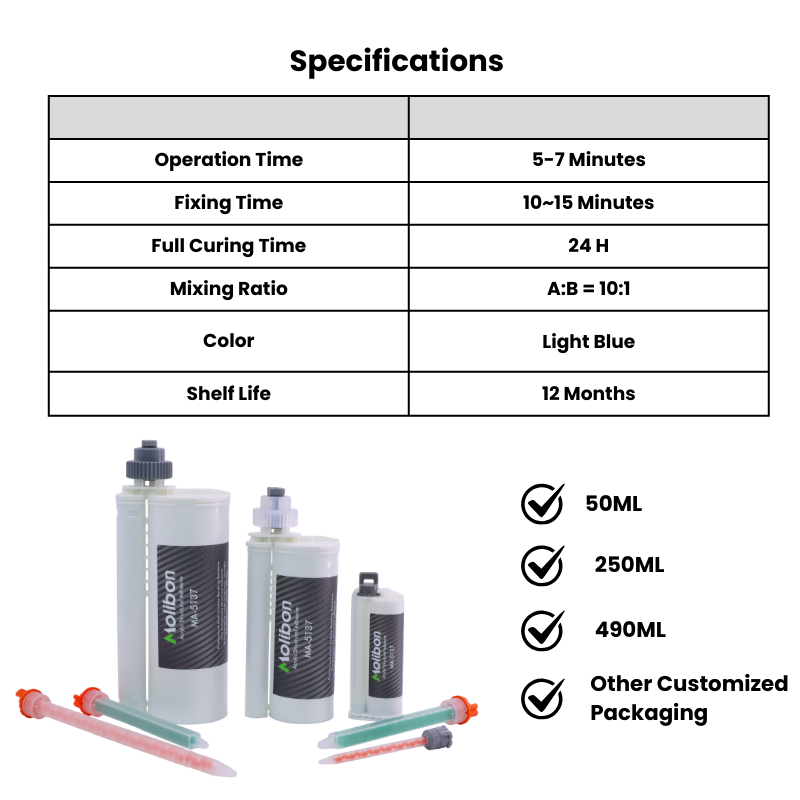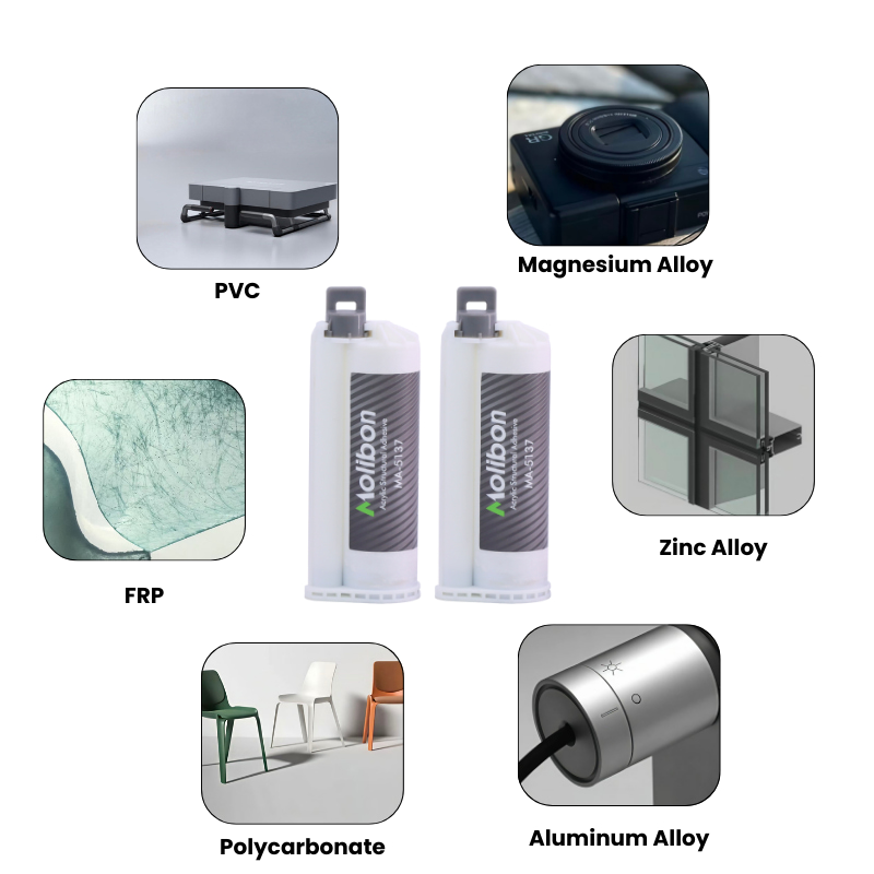 그만큼다중 소재 아크릴 접착제알루미늄 합금 및 스테인리스강과 같은 금속부터 PC 및 ABS와 같은 엔지니어링 플라스틱에 이르기까지 다양한 재료를 접착합니다. 프라이머가 필요하지 않습니다.